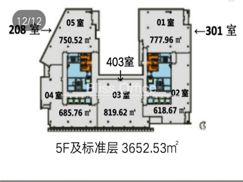 虹桥绿谷广场出租685方标准交房正对电梯口